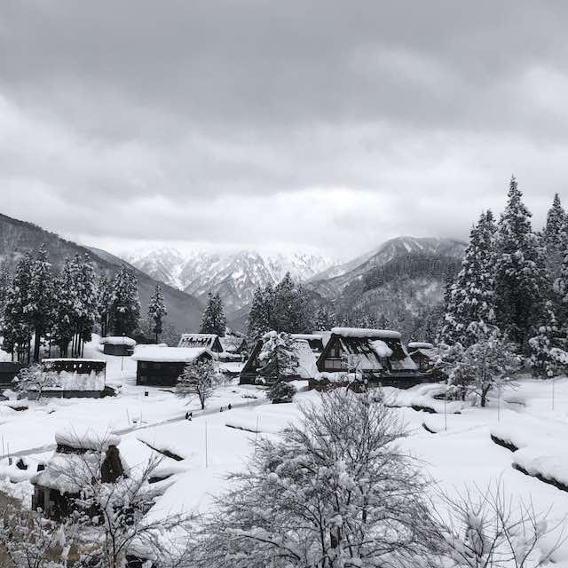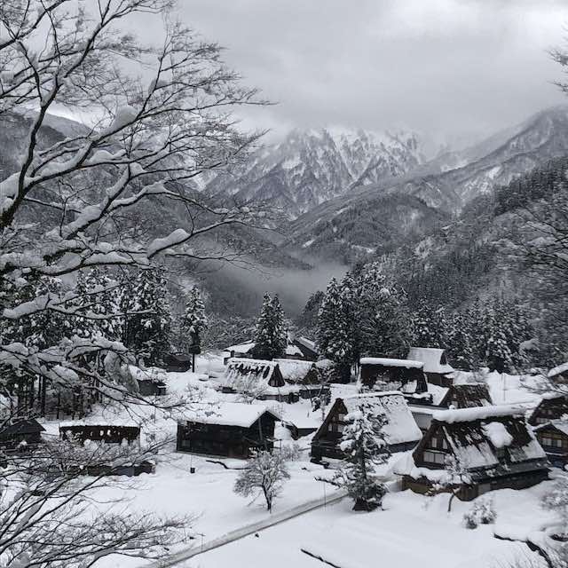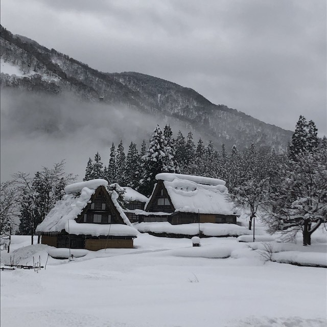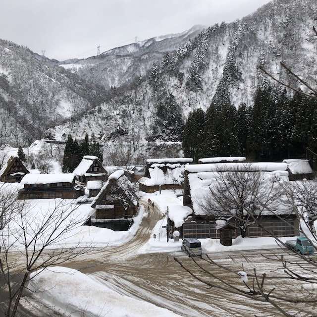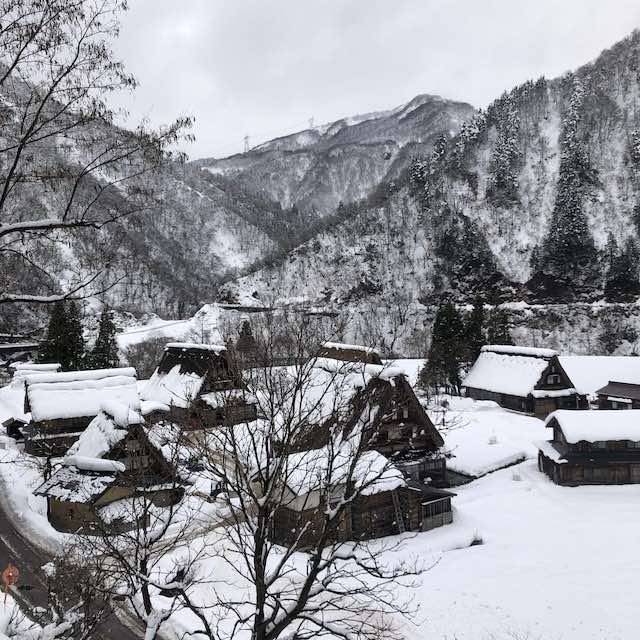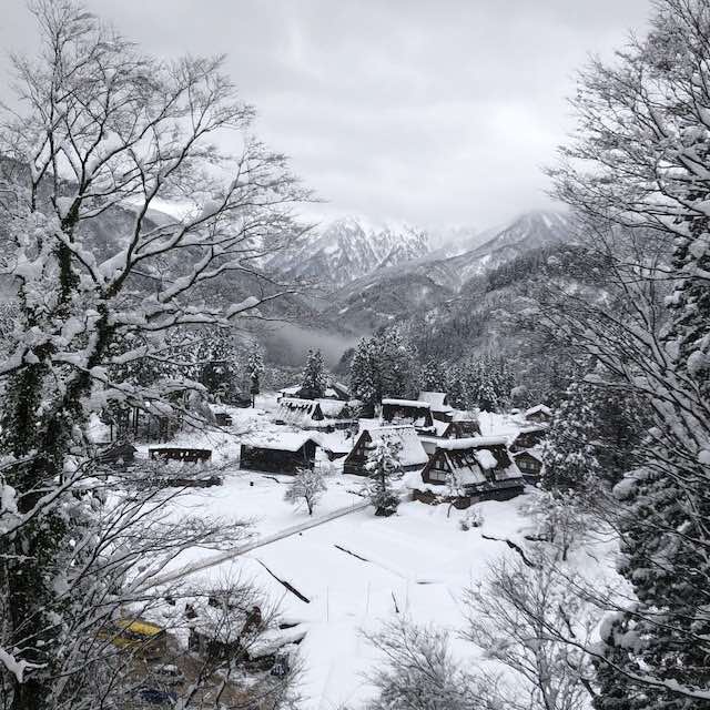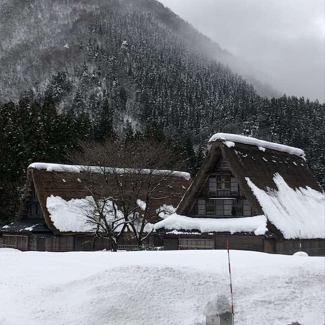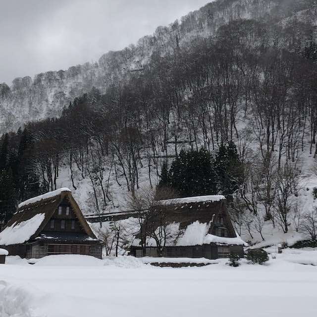 真っ白な雪の中に佇む合掌造りの家々は、息を呑む美しさでした。