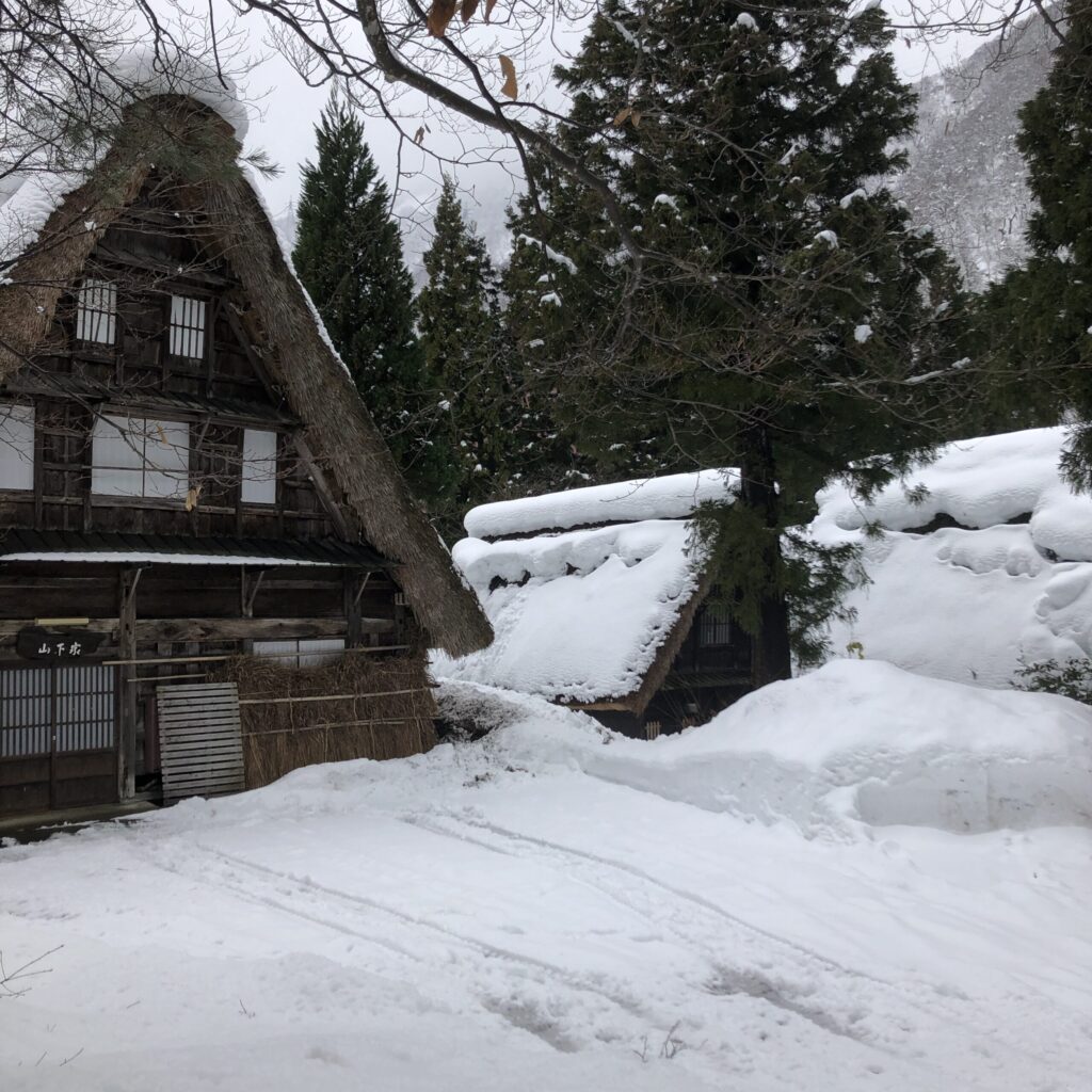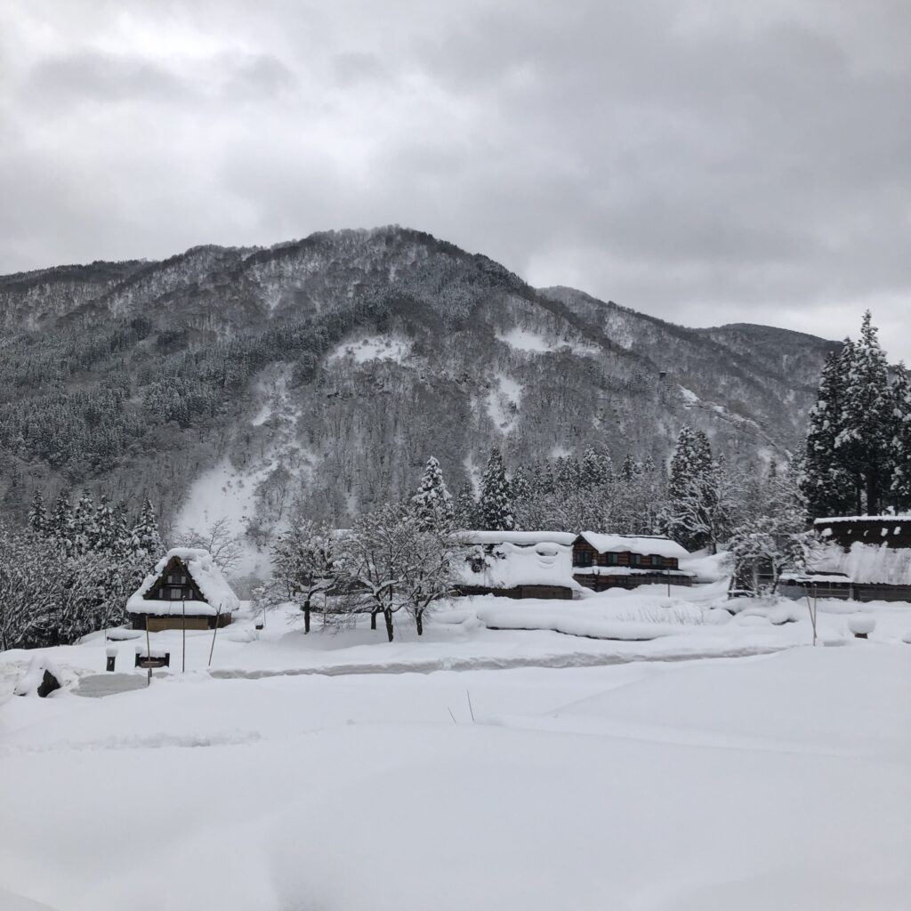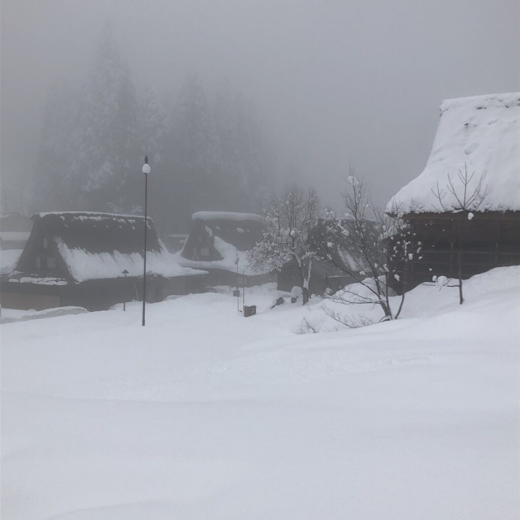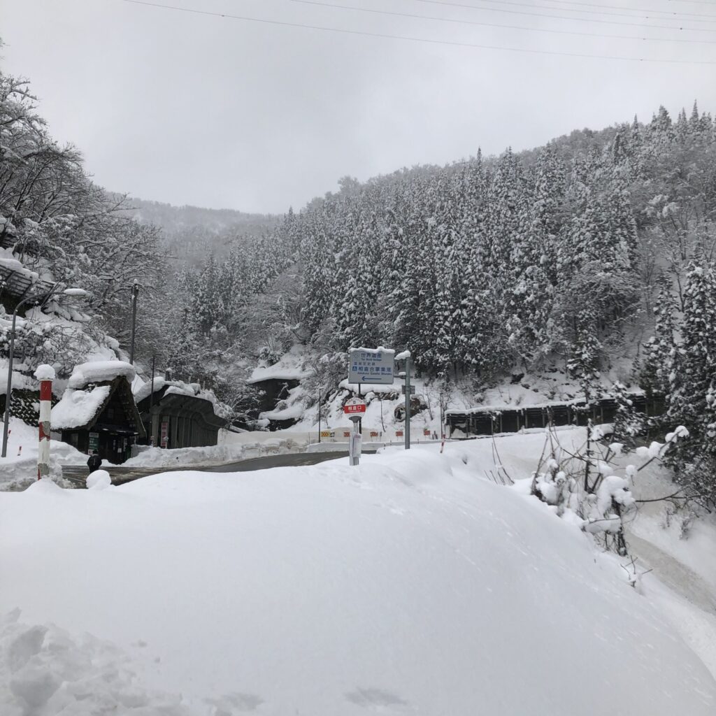 ここは相倉よりもさらに小規模で、飲食店は閉まっており、お土産屋さんが一軒だけ開いていました。静まり返った集落に雪がしんしんと降り積もり、まるで昔の日本にタイムスリップしたような感覚。真っ白な雪の中に佇む合掌造りの家々は息を呑む美しさでした。