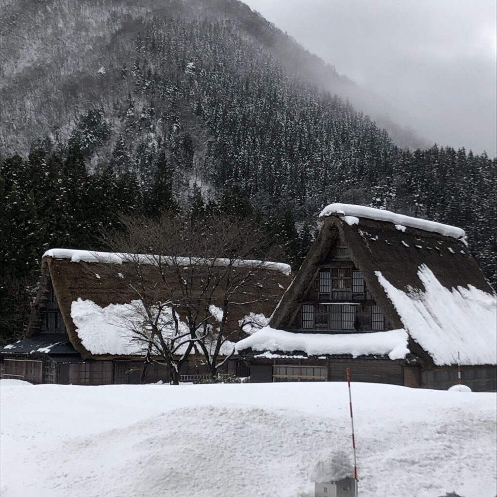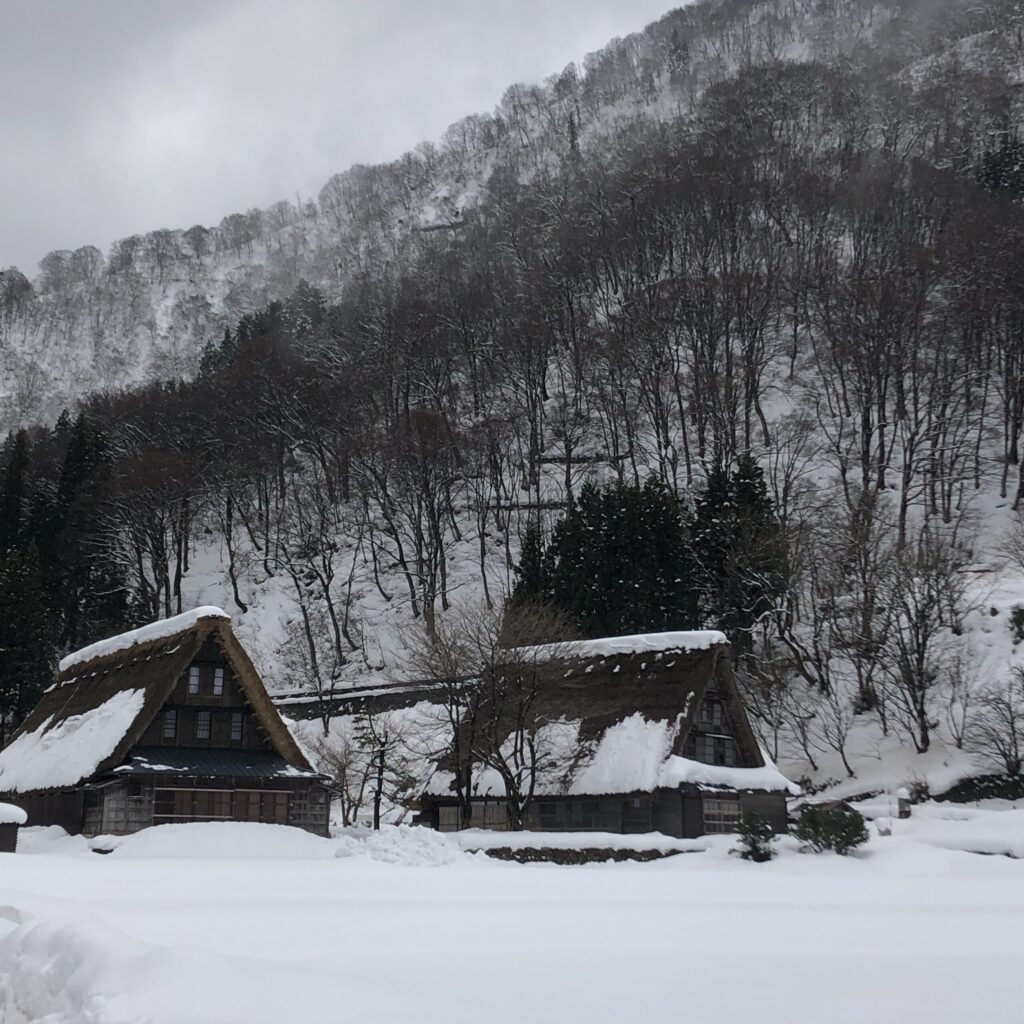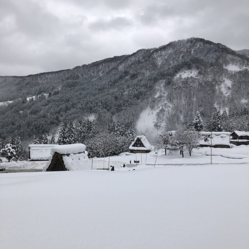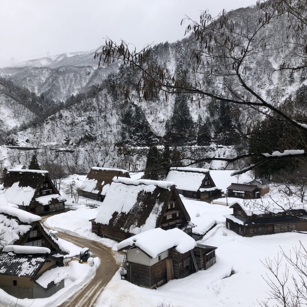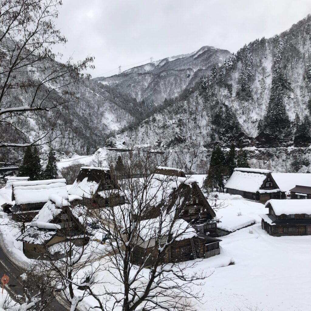 ここは相倉よりもさらに小規模で、飲食店は閉まっており、お土産屋さんが一軒だけ開いていました。静まり返った集落に雪がしんしんと降り積もり、まるで昔の日本にタイムスリップしたような感覚。真っ白な雪の中に佇む合掌造りの家々は息を呑む美しさでした。