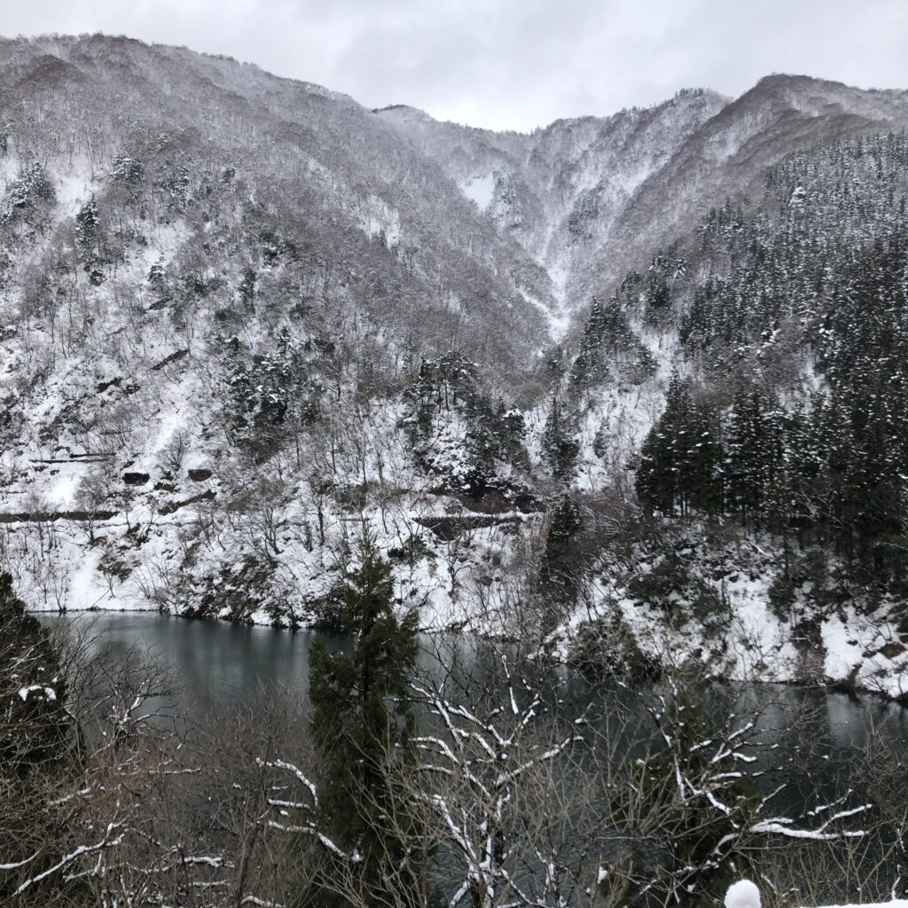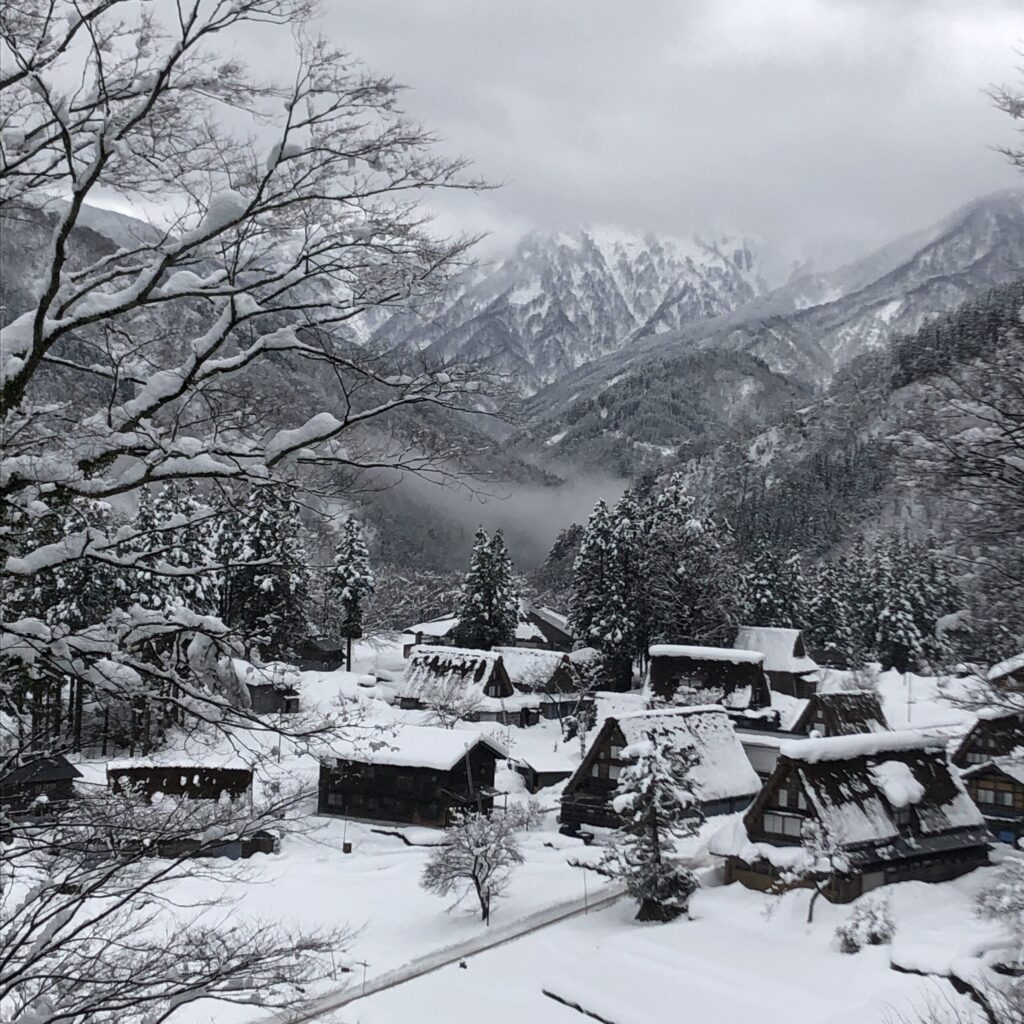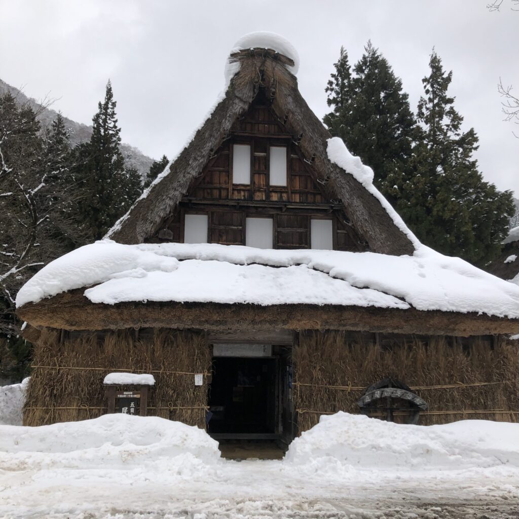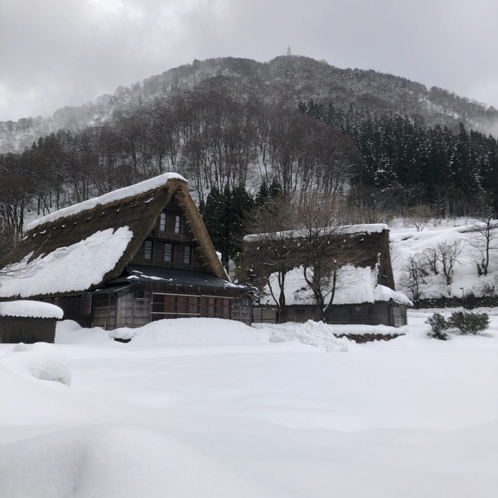 ここは相倉よりもさらに小規模で、飲食店は閉まっており、お土産屋さんが一軒だけ開いていました。静まり返った集落に雪がしんしんと降り積もり、まるで昔の日本にタイムスリップしたような感覚。真っ白な雪の中に佇む合掌造りの家々は息を呑む美しさでした。