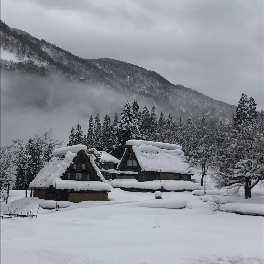 雪に包まれた五箇山の集落は、今も心に残る冬の原風景です。