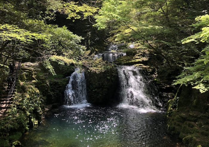日本の滝100選にも選ばれているこの場所は、大小さまざまな滝が連なる渓谷。