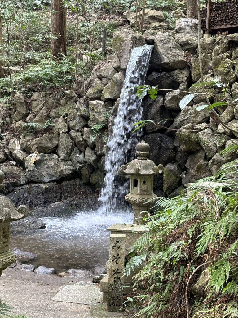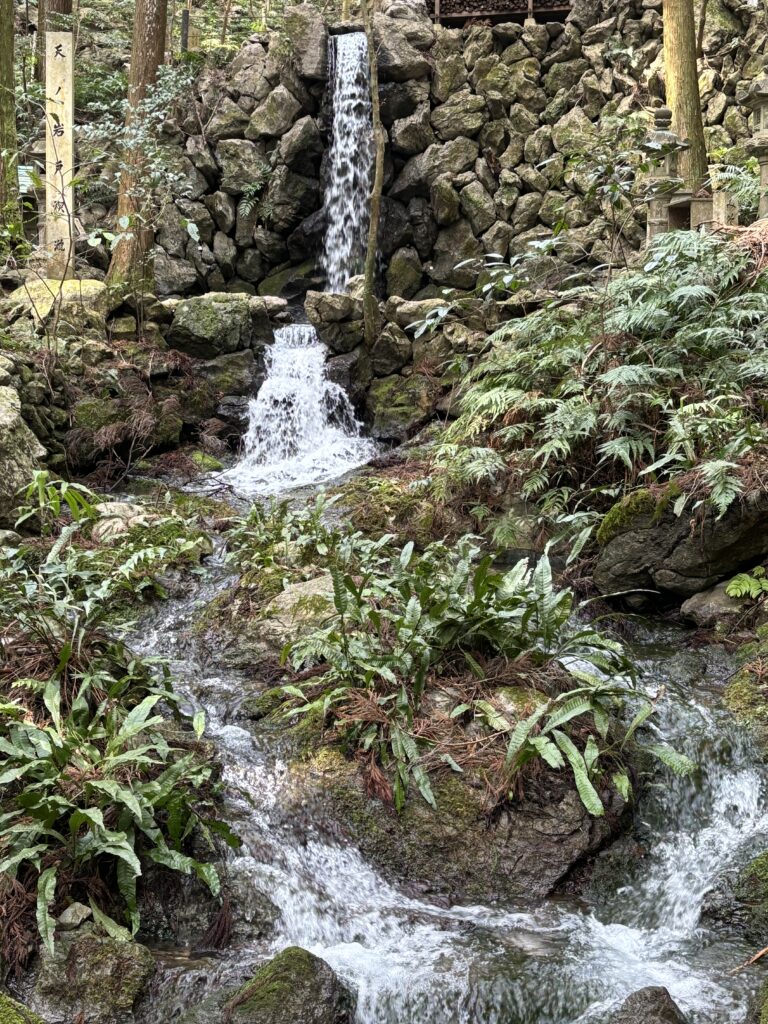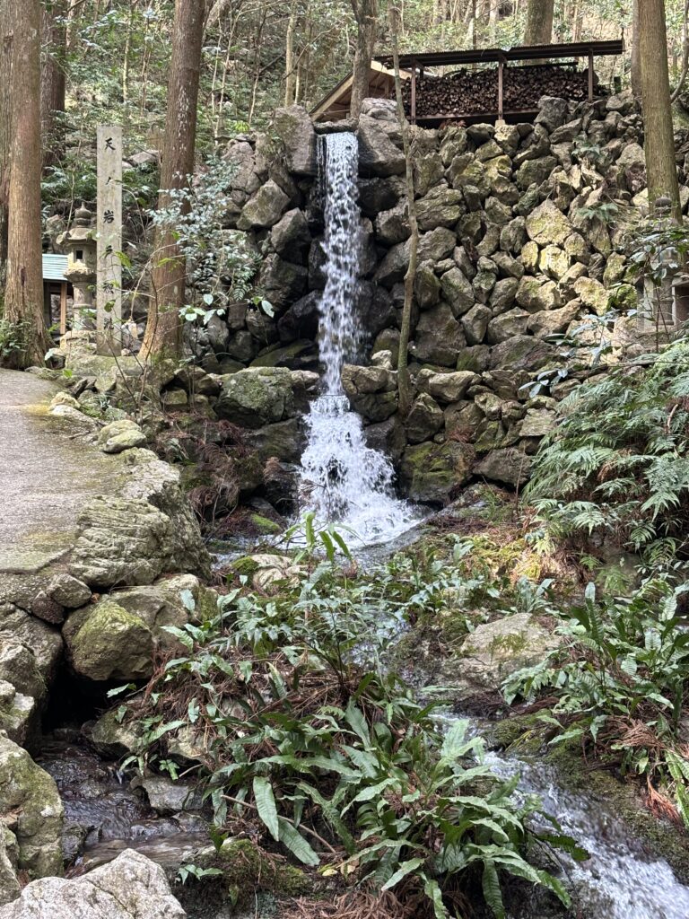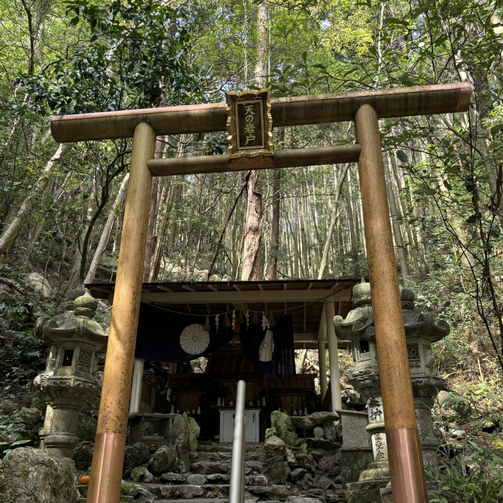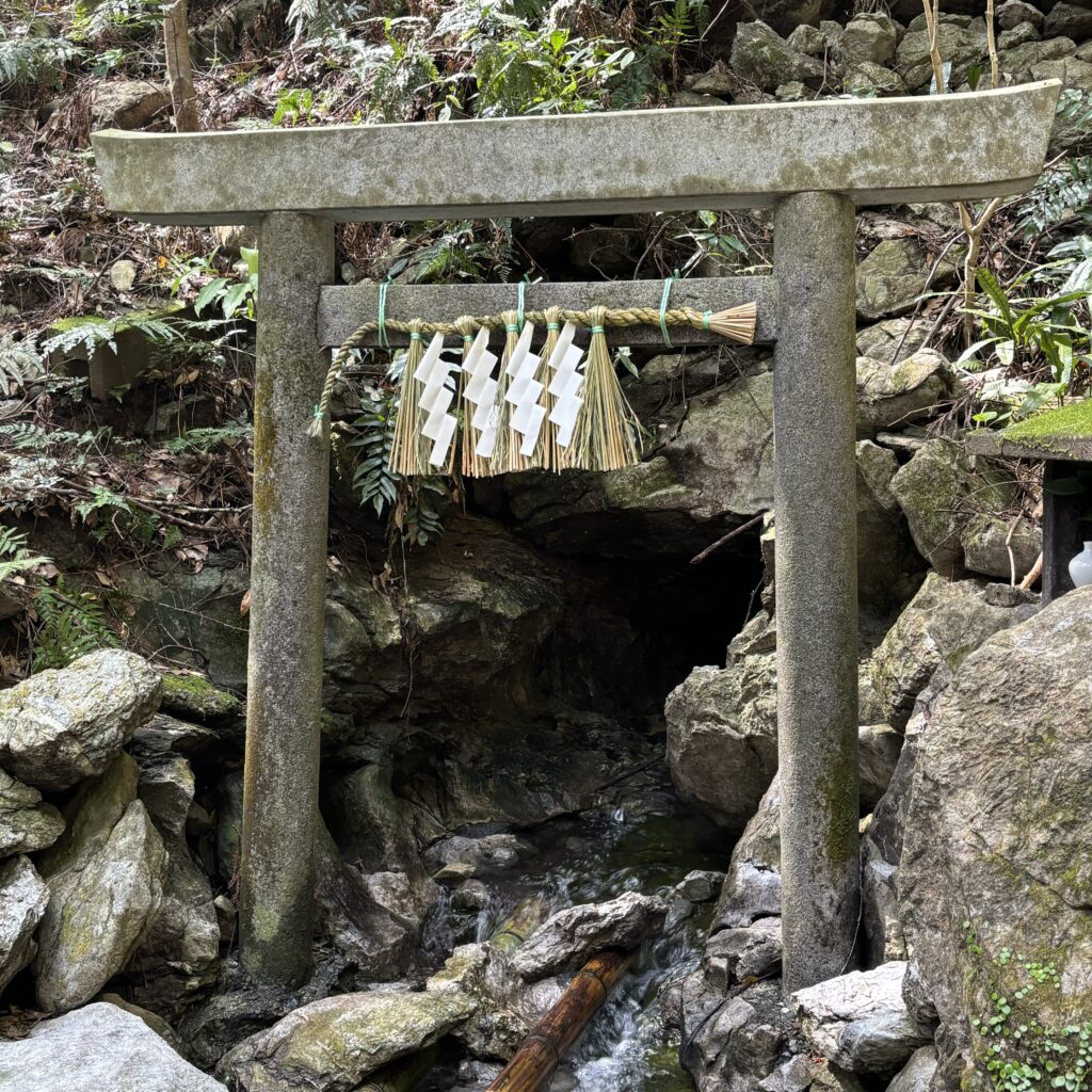 天の岩戸は、神話にも登場する洞窟のひとつ。道はひんやりとしていて、洞窟の奥からは水が絶えることなく湧き出しています。ここは恵利原の水穴と呼ばれ、「日本の名水百選」に選ばれた名水の地でもあります。訪れる人がポリ容器を持って水を汲む姿も見られ、清らかな水の音が印象的でした。