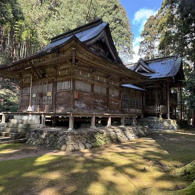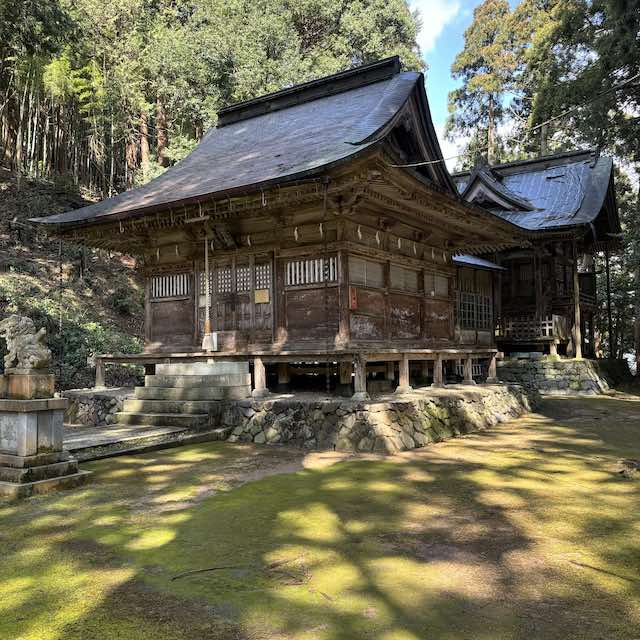 苔に覆われた境内と、年月を重ねた社殿。まるで時間が止まったかのような空気が流れています。