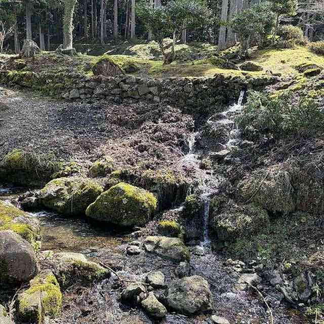 瓜割清水や庭園跡などをたどるルートは舗装されていない場所も多く、ハイキングのような感覚で歩く道が続きます。