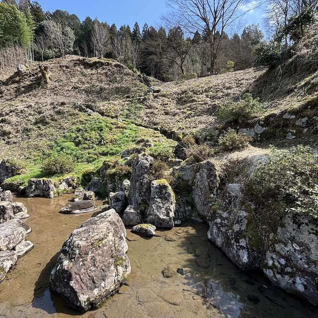 戦国時代に栄えた城下町の跡は、いまも静かな里山の中に広がっています。