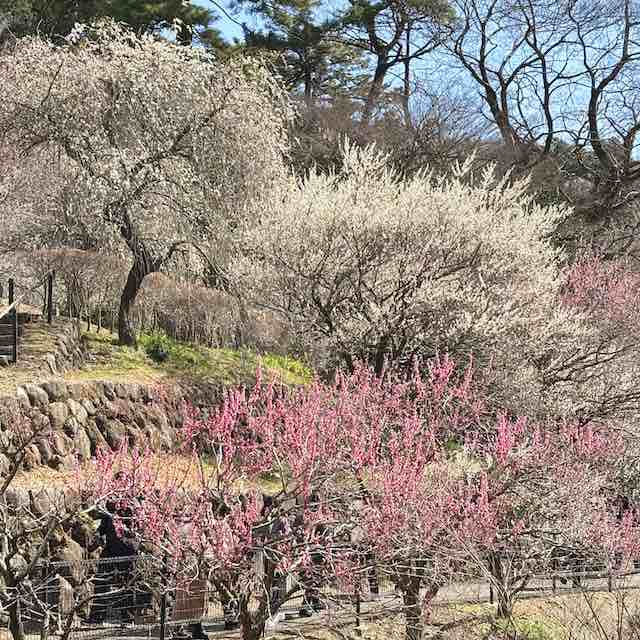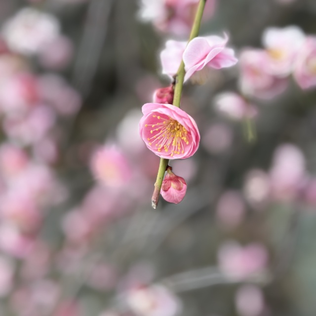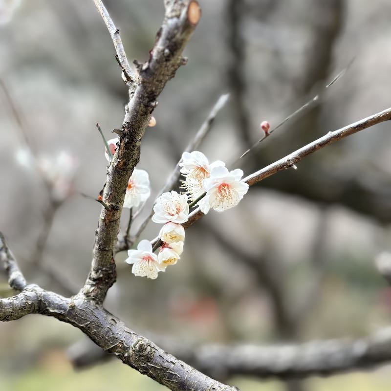 園内は多くの人で賑わい、写真を撮る際には人が写り込まないタイミングを探すのにひと苦労。それでも、紅梅や白梅のやわらかな色と香りが風に乗って広がり、歩いているだけで心がほどけていくような時間でした。