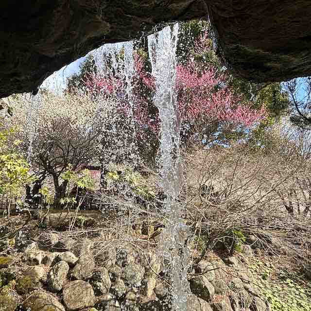 岩の間を抜けて見上げる滝は、思いがけずちょっとした冒険のようで、梅園の中にあるもうひとつの楽しみでした。