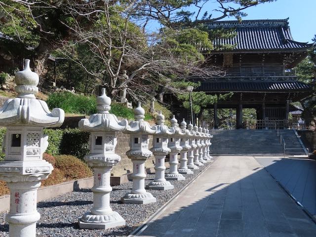 ここは日蓮聖人誕生の地。生家跡に建てられた日蓮宗の大本山です。両側に連なる石灯籠が印象的で、千葉県指定文化財の仁王門、そして迫力ある祖師堂の建築は見応えがあります。境内をぐるりと一周するだけでも充実した時間になります。
