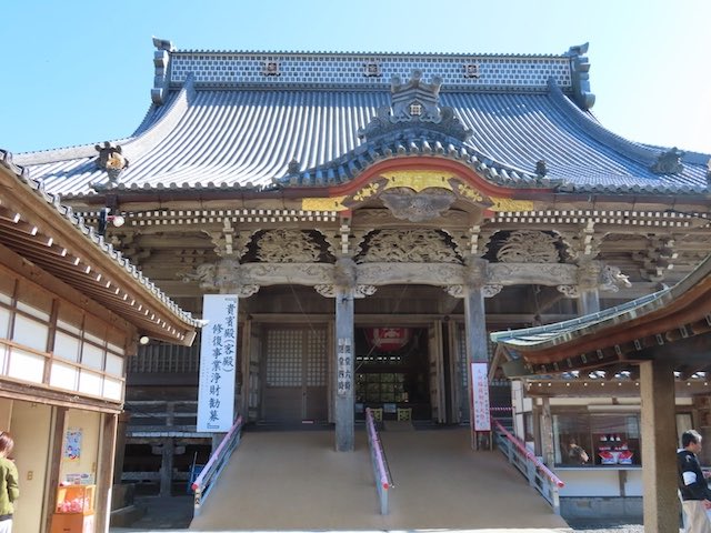 門前には参道らしい飲食店や土産物店、旅館が並び、足湯もあります。ほどなくして誕生寺に到着しました。