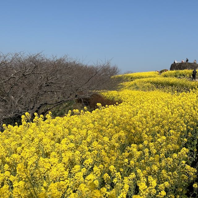 1月上旬から2月にかけて早咲きの菜の花が見頃を迎えるこの場所は、晴れていれば富士山も望める「関東の富士見100景」に選ばれています。