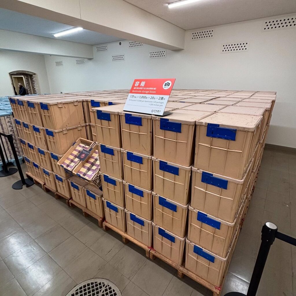 展示コーナーには、1,000億円のカートン、2億円の容器サンプル、日銀に戻ってきたお札の傷みを確認するための機械なども並び、お金の裏側を知る貴重な学びになりました。