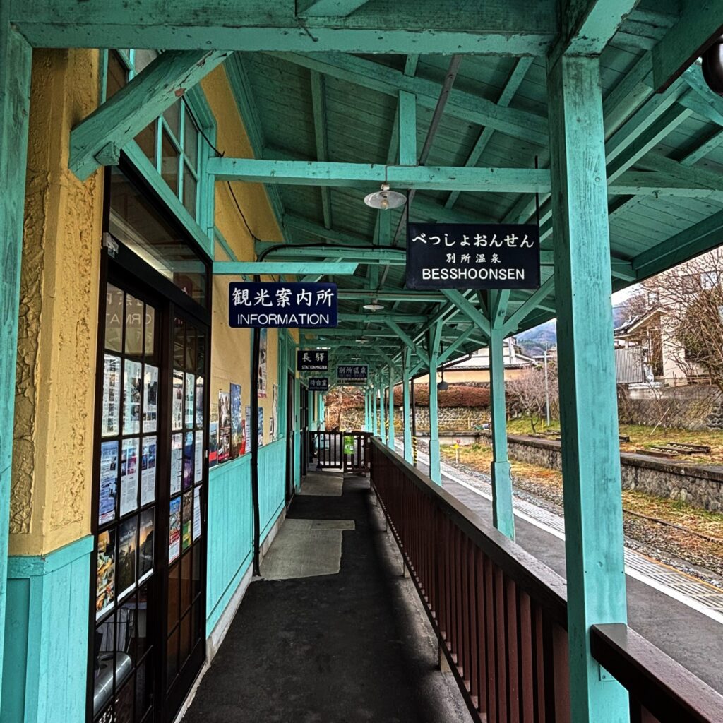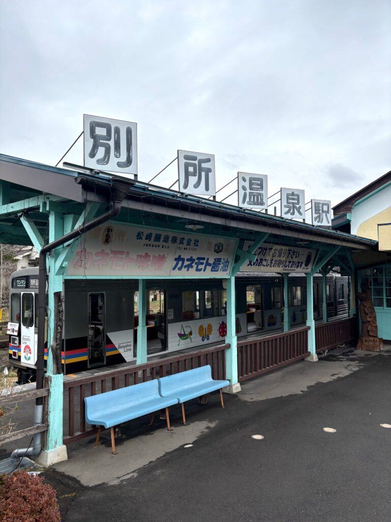 別所温泉駅に到着すると、まるで時間が止まったかのような味のある駅舎に出迎えられます。古き良き温泉街の空気が漂い、のんびり歩くだけで心がほどけていくようでした。