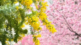 蔵前神社で出会う春色の共演 — 河津桜とミモザが彩る東京の早春
