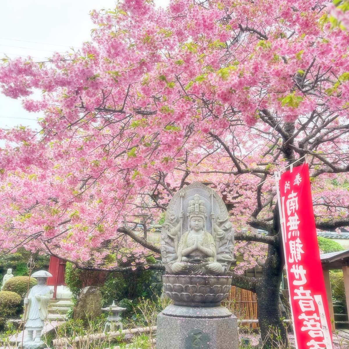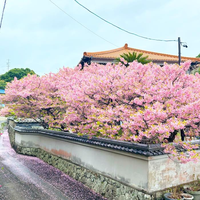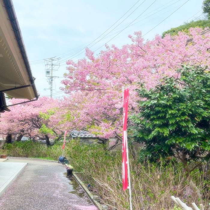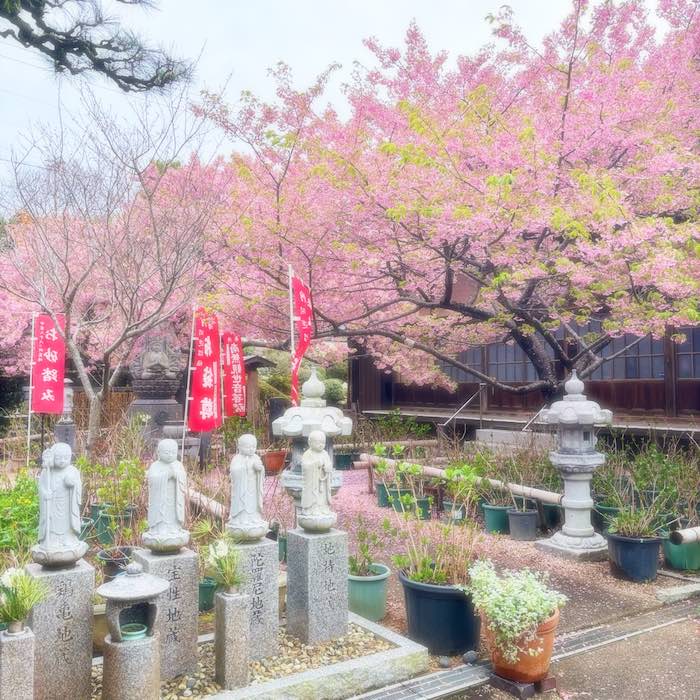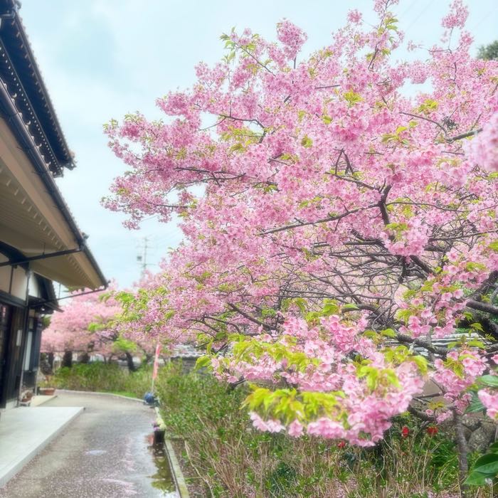 大慈寺のてんれい桜は、河津桜のやわらかな色合いが境内に広がり、訪れる人の心をそっとほどいてくれる存在です。