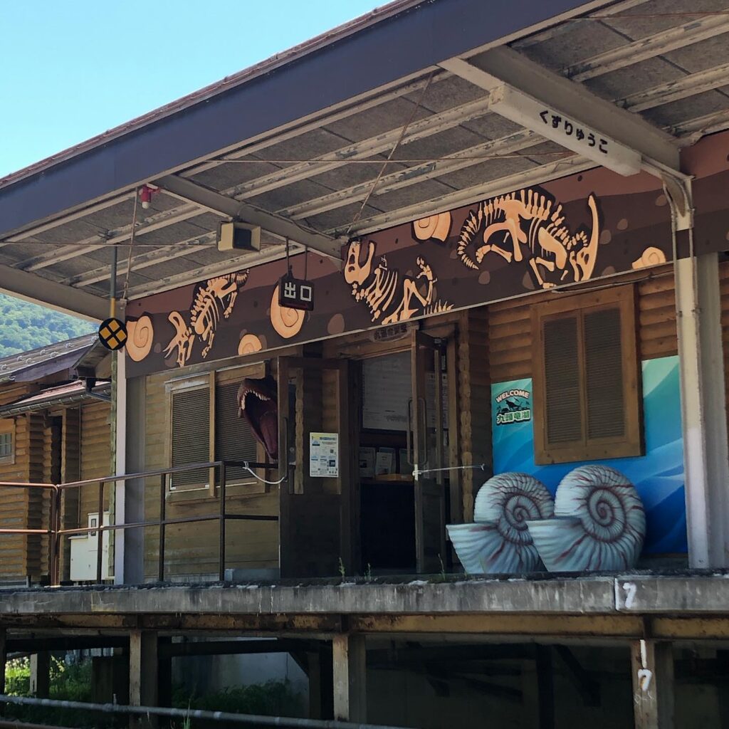バスに揺られて辿り着いた九頭竜湖駅。ホームはすっかりリニューアルされ、以前訪れたときに見かけた“時が止まったような広告”は姿を消し、かわいらしい恐竜や化石のモニュメントベンチが迎えてくれました。