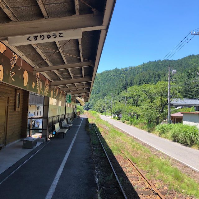 ホームはリニューアルされ、昔見かけた駅の風景とは少し変わっていましたが、山あいにひっそり佇むその姿は、周囲を囲む深い緑と相まって、どこか旅情を誘います。