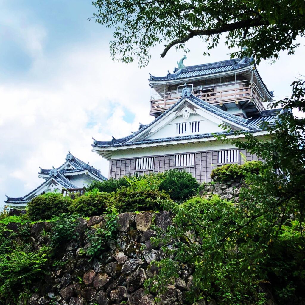 まず向かったのは「天空の城」と呼ばれる越前大野城。城山へ続く階段をひたすら登る往路は、盆地特有の蒸し暑さもあってまるでトレーニングのようでした。滝のように汗が流れ、途中で何度も立ち止まりながら進みます。
