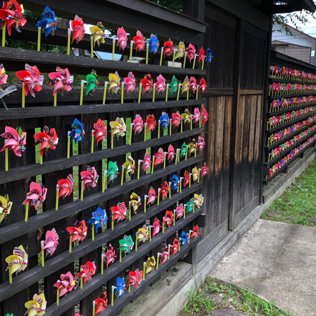 武家屋敷・旧田村家の飾りには写真映えする風車がたくさんありましたが、この日は風がなく静止していたのが少し残念。それでも古い町家や商店が連なる七間通りには酒屋やみそ屋などが並び、観光地化されすぎていない落ち着いた雰囲気が心地よく感じられました。