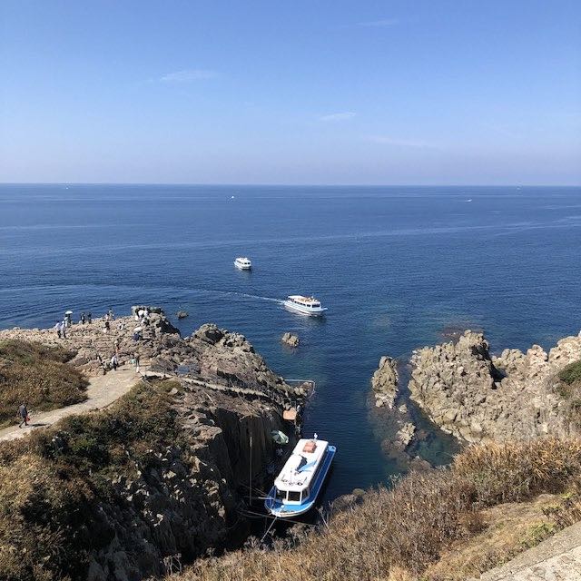 観光船にも乗ってみると、断崖が迫りくるような迫力があり、海の青さとの対比が印象的でした。