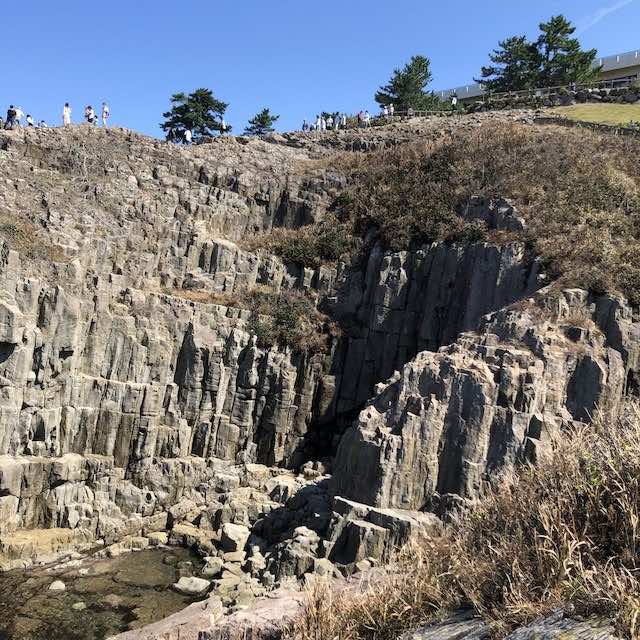 晴天に恵まれたものの、海風は強く、崖の先端に立つと足元からスリルが伝わってきます。