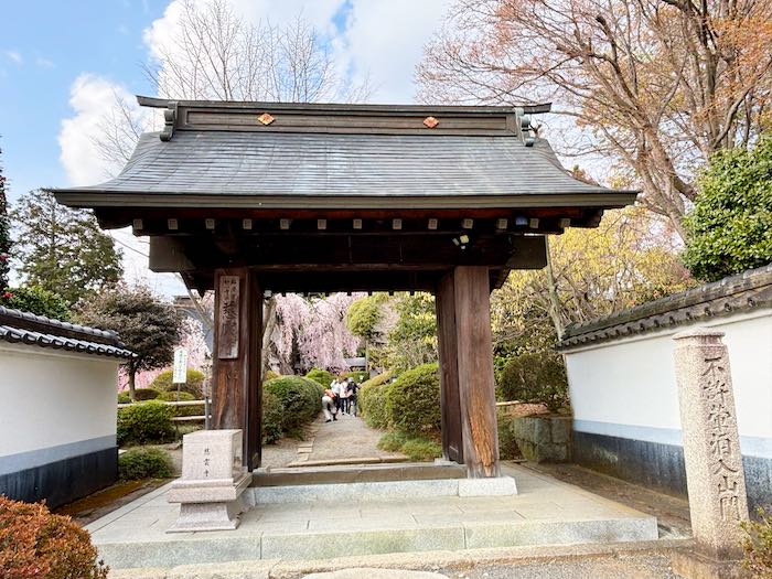 満開の桜が門を覆うように咲き、お寺の建物が見えないほどの迫力です。
