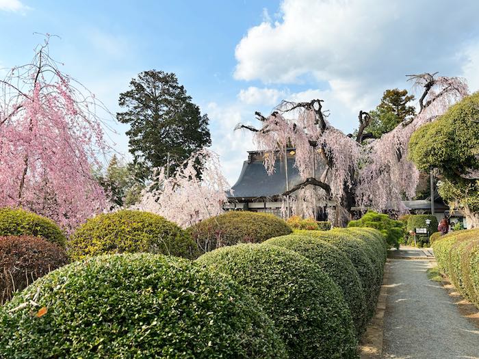 境内にはほかにも小ぶりのイトザクラがあり、ピンクや淡い色合いの花が咲いていました。