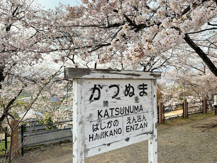 勝沼ぶどう郷駅で出会った、桜と人の風景