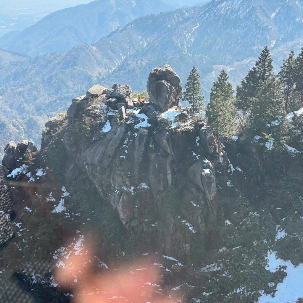 山頂付近では子どもたちがソリ遊びを楽しんでいる一方、岩肌の上で休憩している登山客の姿も!ロープウェイから見えるその光景に「この雪の中を歩いてきたのか…」と驚きました。