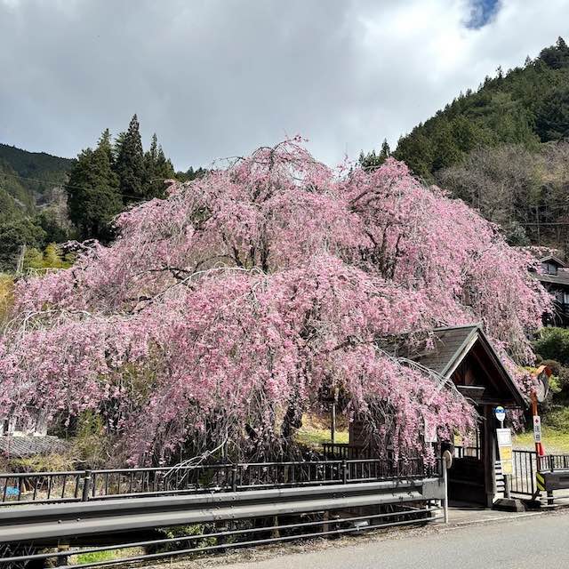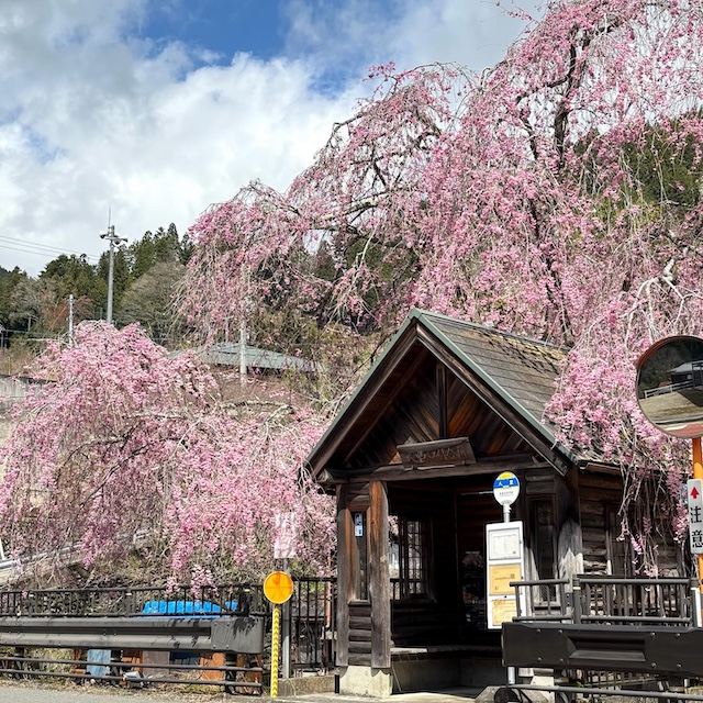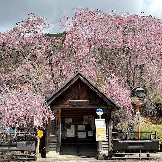 静かな集落に咲く一本の枝垂れ桜。バスの本数は2時間に1本くらい、それでも行く価値がある特別な花との出会いを記録します。
