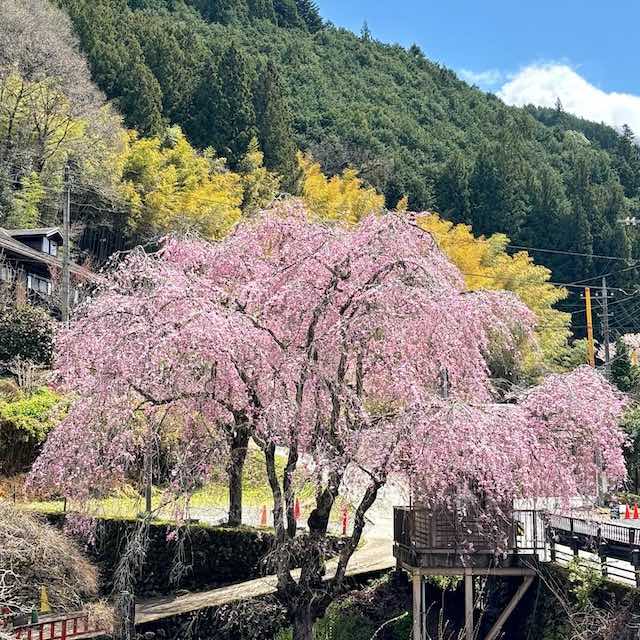 満開のしだれ桜と静かな山里の時間