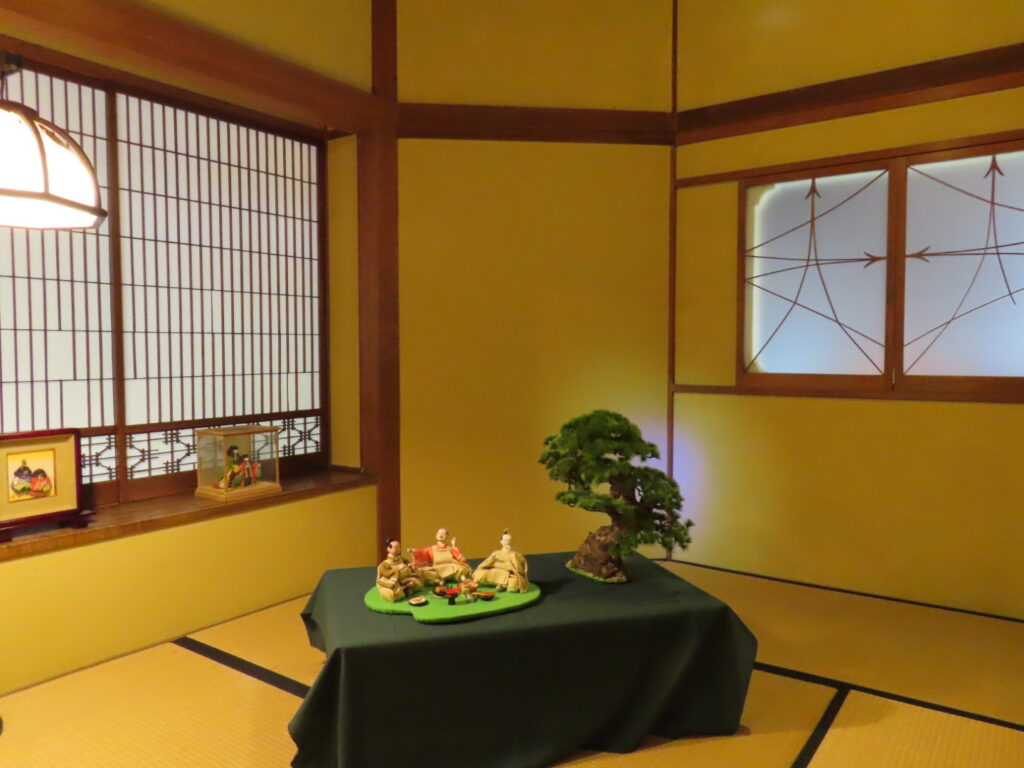 館内には和紙で作られた人形や雛人形も展示され、空間そのものがひとつの作品のようでした。 窓に使われているガラスやすりガラスも、今ではあまり見かけないもので、どこか懐かしさを覚えます。