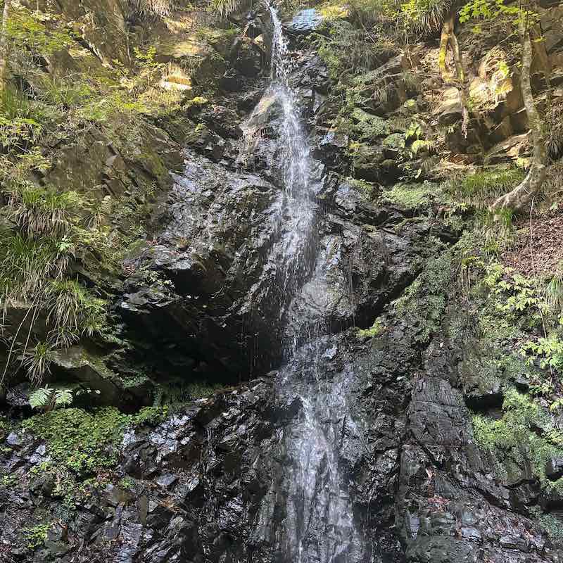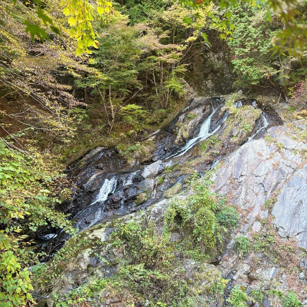 山道を下りていくと、九頭竜の滝へ。名前の通り、近くには九頭竜神社があり、 ここでは古くから滝行も行われているそうです。 落ちる水の音が力強く、滝の前に立つと自然と背筋が伸びるような気持ちになります。 神聖な雰囲気に包まれたこの場所では、自然と向き合う静かな時間が流れます。