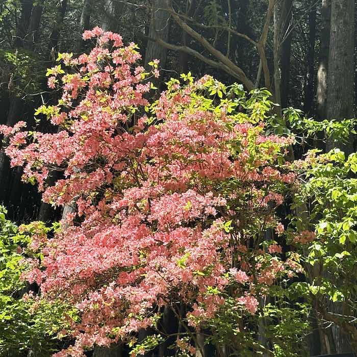 ところどころに咲くヤマツツジが、新緑の中に鮮やかな彩りを添えていました。緑一色になりがちなこの季節の山の中で、その赤がふと現れるたびに、歩く楽しさが増していくようでした。