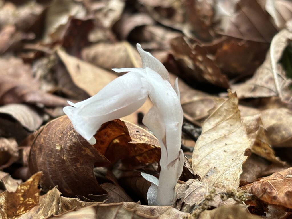 山道では、八重咲のヤマブキや、写真1枚目のギンリョウソウ(別名:ユウレイタケ)にも出会いました。森の木漏れ日の中にひっそり咲く白い姿がとても印象的でした。