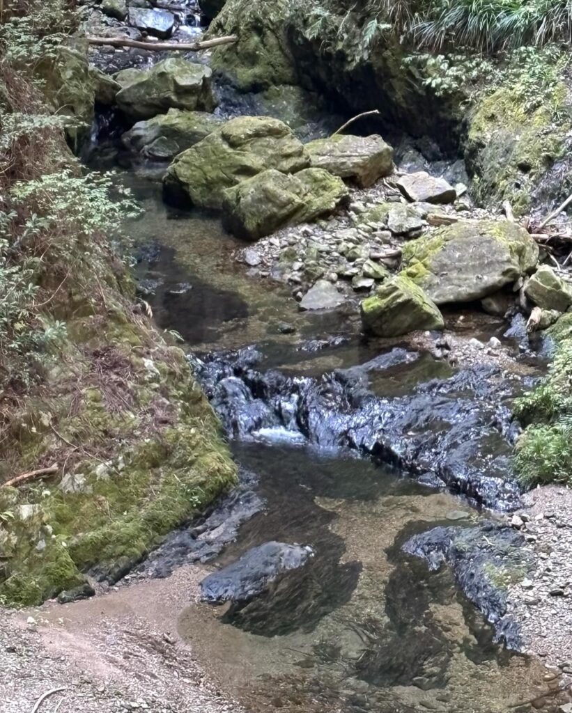 岩肌を滑り落ちる水と、冷たい空気。 木々のざわめきと鳥の声だけが響くその場所で、しばし立ち止まり、自然のリズムに身を委ねました。 東京にいながら、まるで遠い山奥を旅しているような時間です。