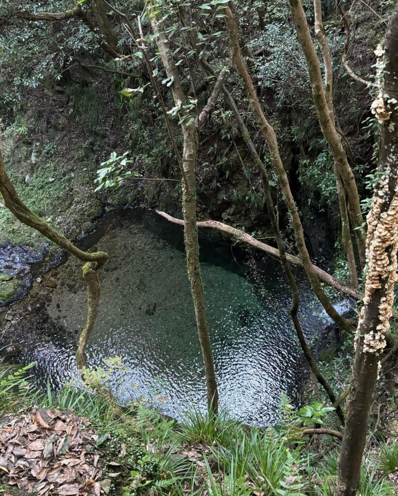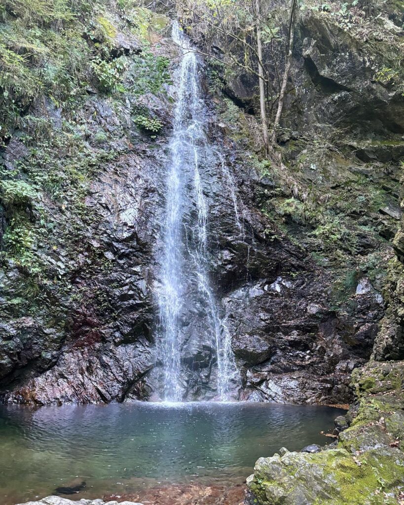 滝に近づくにつれて、空気がひんやりと変わっていきます。 木々の間から水音が聞こえ始め、視界の奥に白い水の流れが現れた瞬間、まるで別世界に入ったよう。 滝つぼを囲む空間には、神秘的な静けさが漂っていました。
