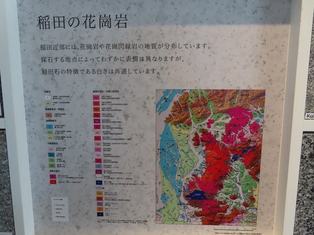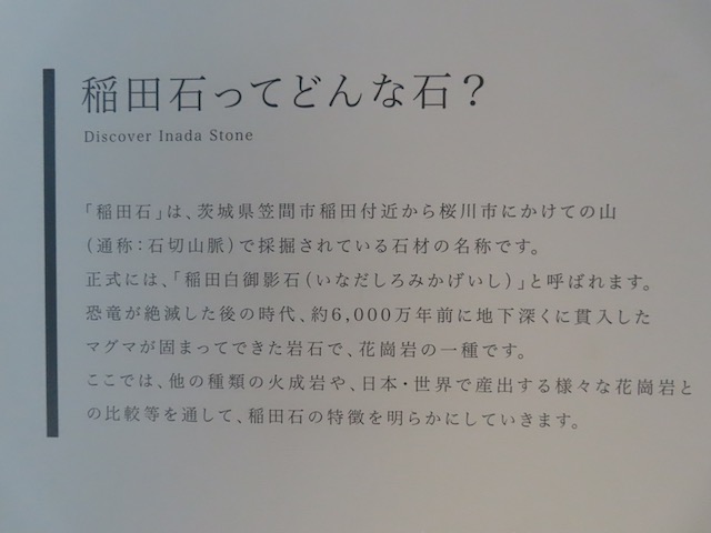 最寄駅の水戸線・稲田駅隣には「石の百年館」があり、稲田石の成り立ちや特徴を無料で学べます。展示パネルや石の見本が充実していて、予備知識を得るのに最適です。