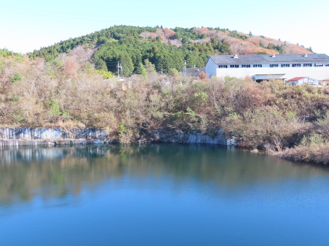 石切山脈までは徒歩約20分。バスやタクシーはないものの、道は平坦で迷う心配もありません。入場料300円で第1・第2展示場を見学できます。休止した採石場に湧き水がたまり、湖のような景色が広がる絶景に、期待が一気に高まります。