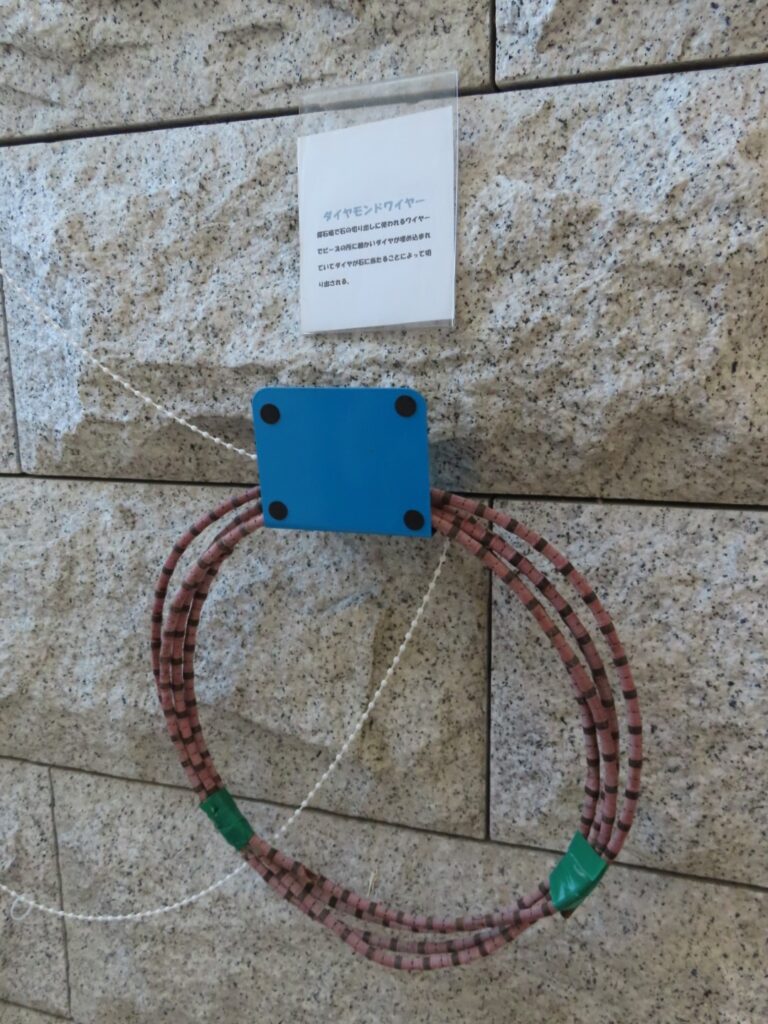 昔は手掘りで多くの人手を要していた採石作業も、現在はダイヤモンドワイヤーや機械化により少人数に。断面を見ると、手掘り時代と機械採掘の違いがはっきり分かるのも興味深いポイントでした。