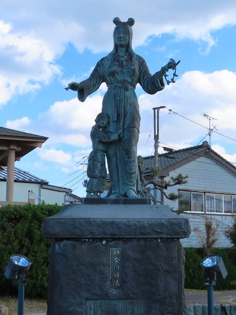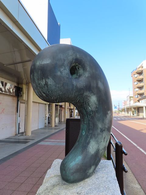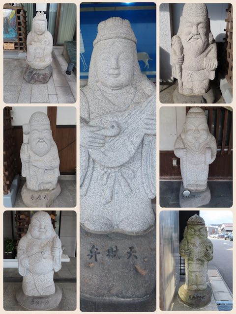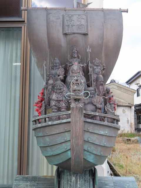 街のあちこちには、翡翠原石や大きな勾玉、七福神と「奴奈川姫」のオブジェ。