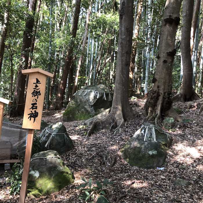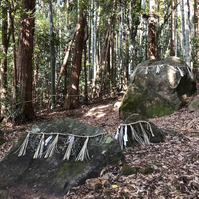 そこには、社殿はなく、しめ縄が掛けられた磐座が六体。そのほかにも地面から顔を出す大きな石がいくつかあり、静かに祀られていました。