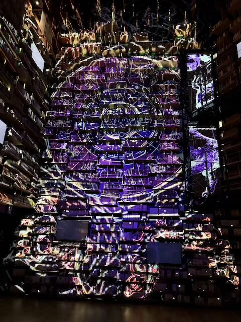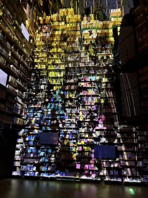 本棚劇場ではプロジェクションマッピングの上映もあり、 幻想的な光に包まれる体験に思わず見入ってしまいました。 本とアートが一体化した空間は、 静かに心を動かしてくれる場所だと感じます。