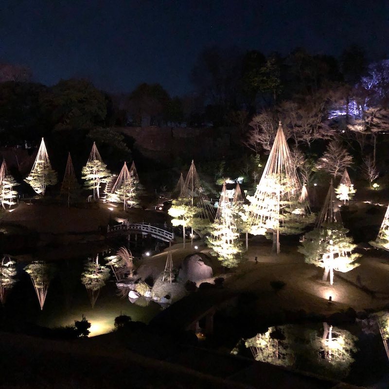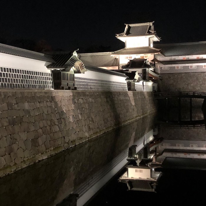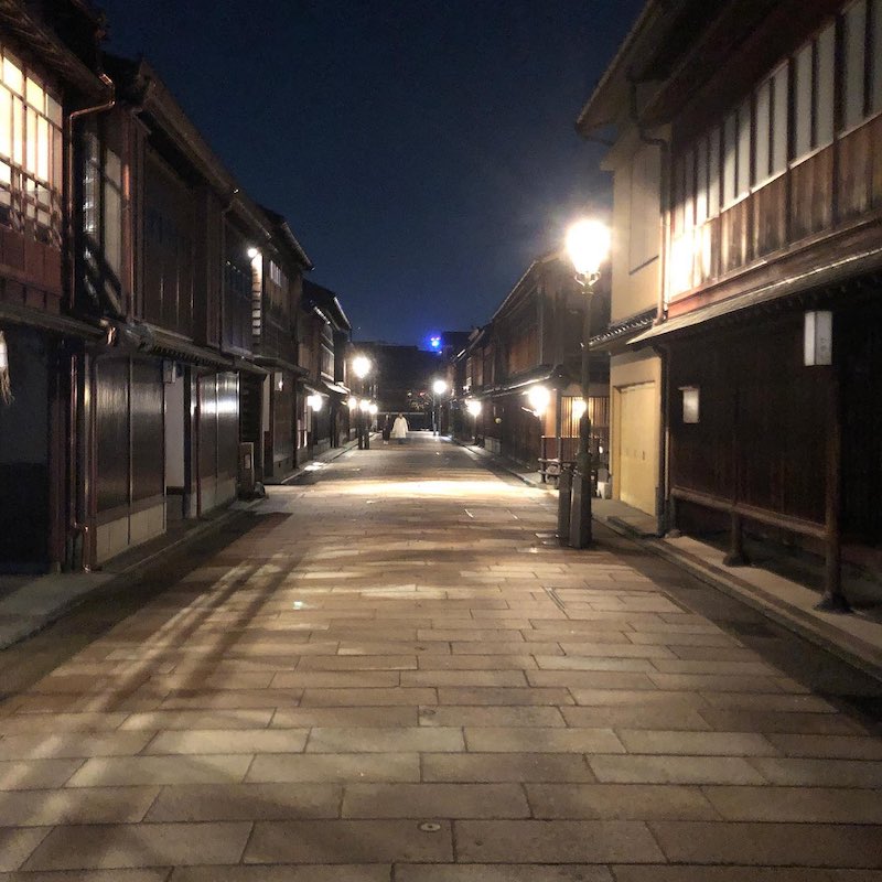 夜の金沢は、明るすぎず、少しだけ暗さが残っています。