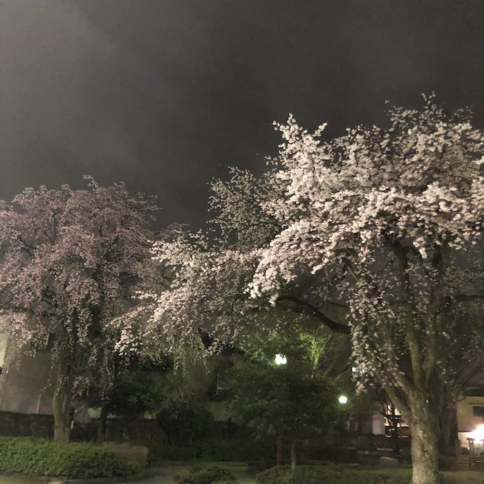 桜の季節を前にしたこの時期、通りにはぼんぼりが灯されていました。