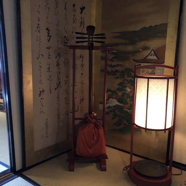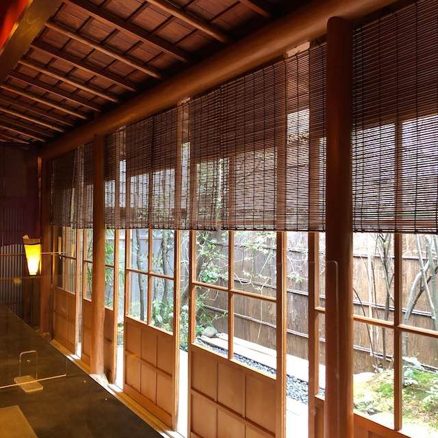 それでも、すだれ越しに入るやわらかな光や風の通り道のつくり方、そして天井の灯りだけでなく床に置かれた照明による間接的な明るさが、空間に奥行きを生んでいました。