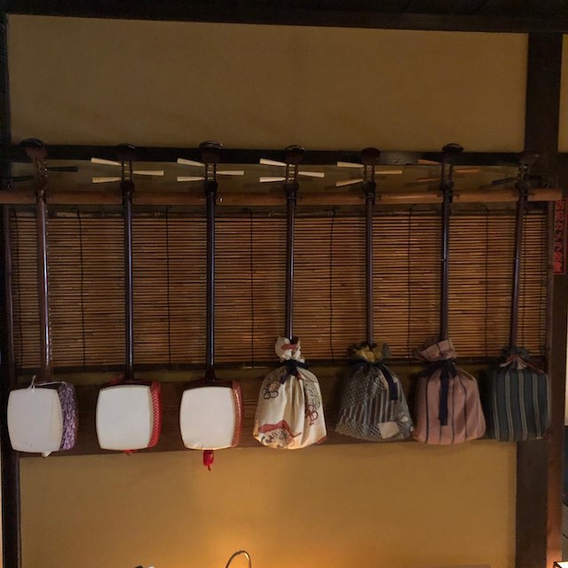 三味線は棚にしまわれているのではなく、壁に掛けられたり、置き物のように飾られていました。