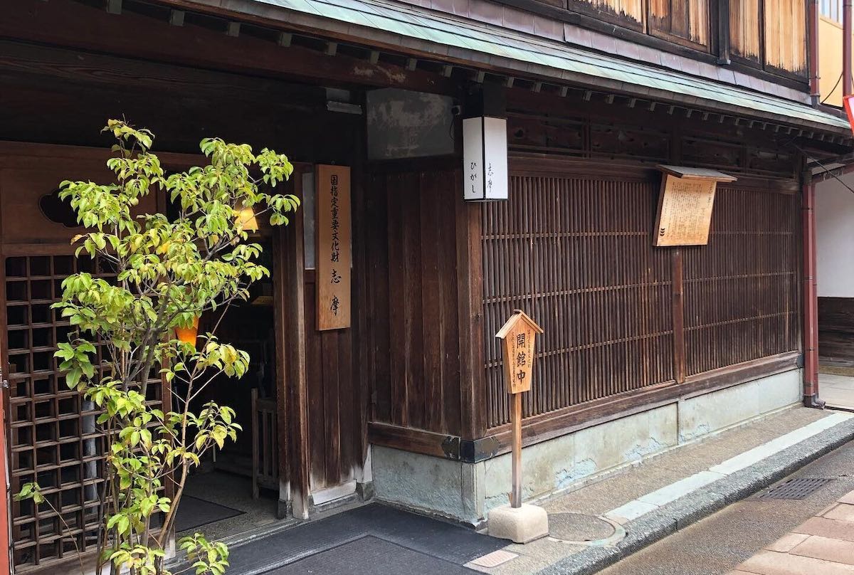 金沢の観光地として知られるひがし茶屋街。その中でもひときわ趣のある建物が、国の重要文化財に指定されているお茶屋「志摩」です。
