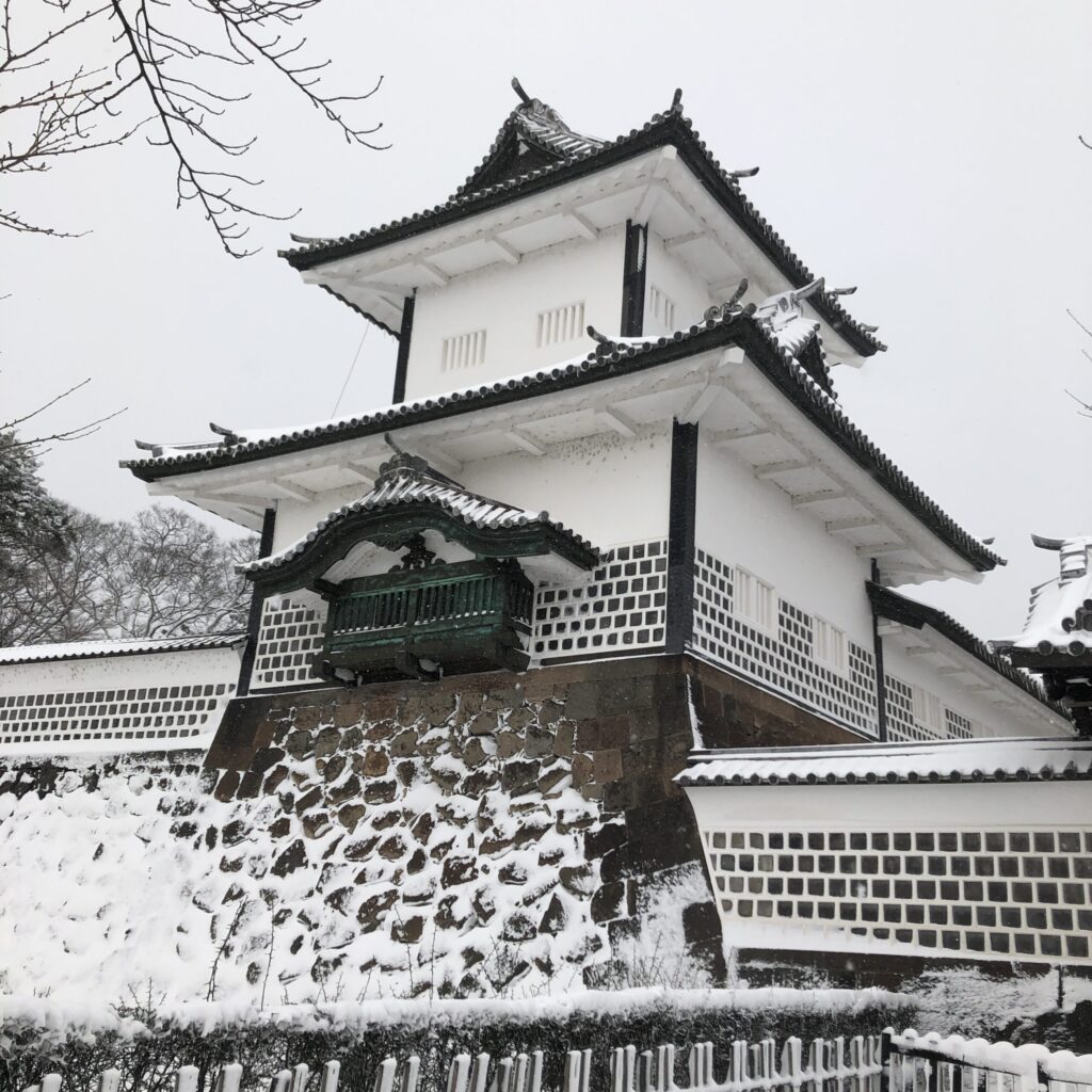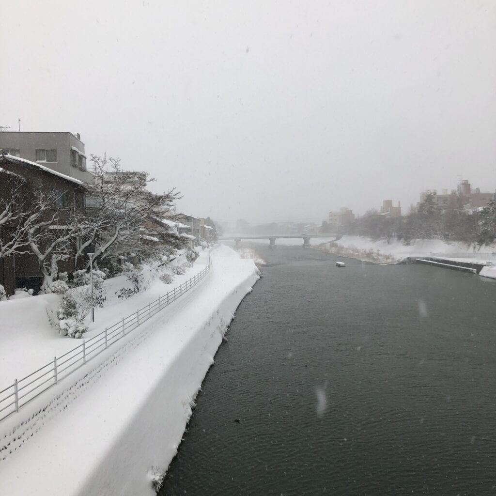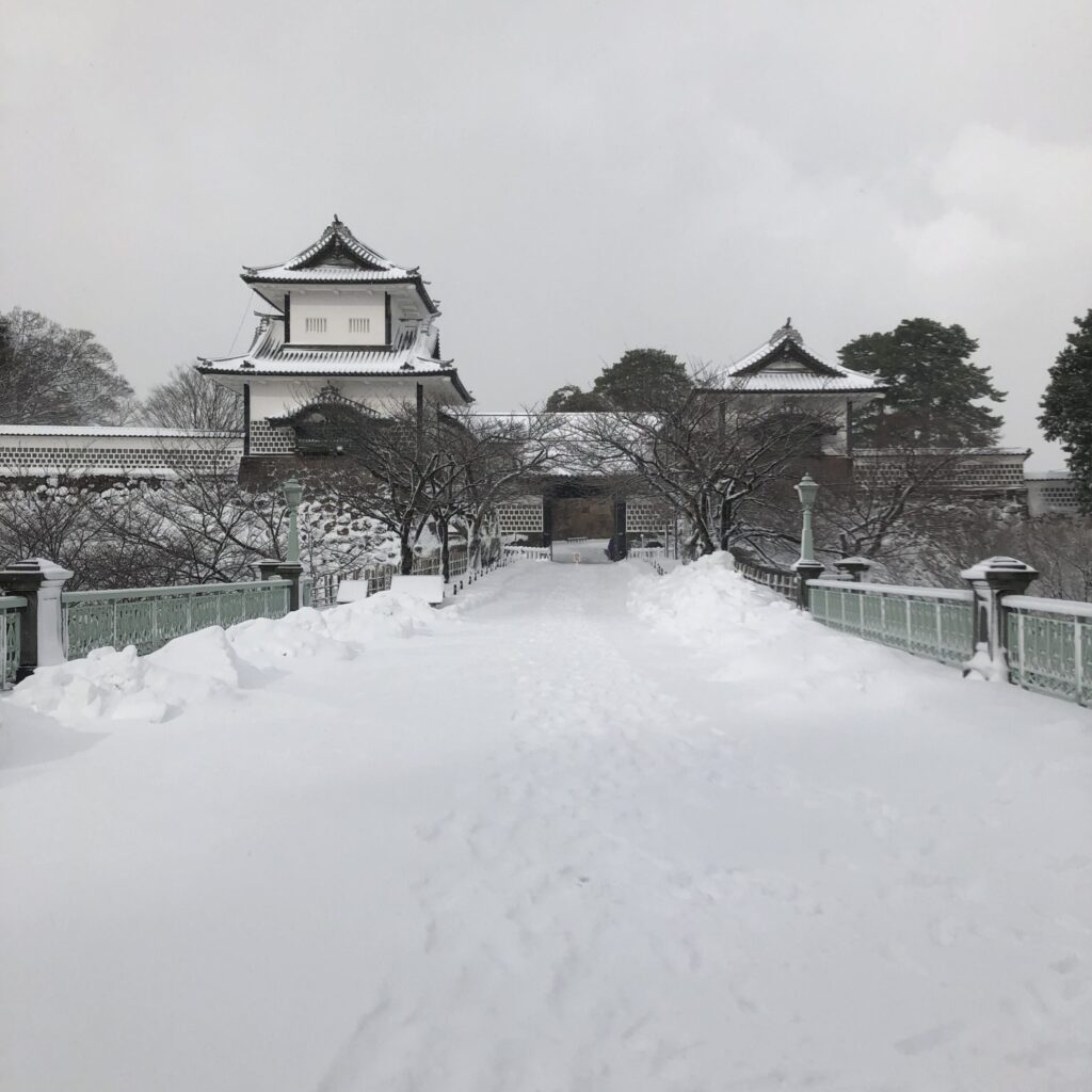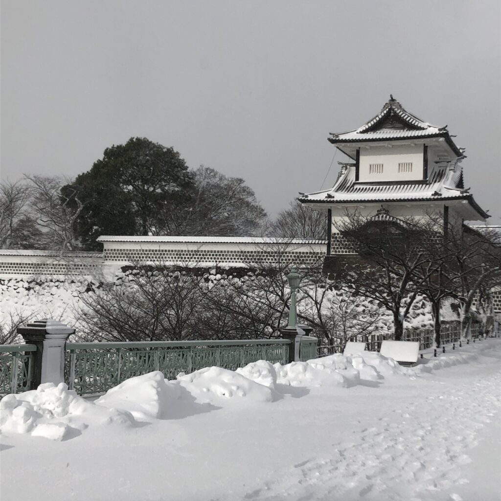 雪を踏みしめながら歩く道すがら、見慣れた金沢の街並みがいつもと違う顔を見せてくれます。