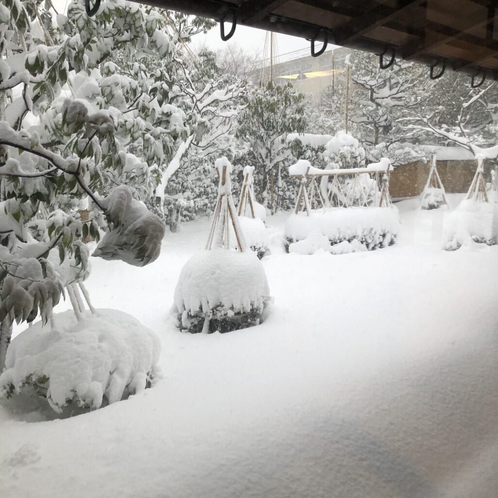 朝、ホテルの部屋のカーテンを開けると、街全体が白銀の世界に包まれていて、思わず外に出たくなりました。子供の頃に見た大雪を、金沢で再び見るのは初めて。童心に帰るような気持ちで、金沢駅からバスに乗り、兼六園下へ向かいました。